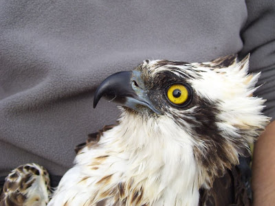 A csapda tulajdonképpen egy hurokkal ellátott beülőfa. Három ilyet raktunk ki. A sokórás várakozás közben a területen mozgó százezres récetömeg átnézésével foglaltuk le magunkat, aztán fél három fele végre megakadt egy fiatal hím halászsas! Miután meggyűrűztük és lemértük mindenét, el is engedtük. Nem kis élmény kézben tartani egy ilyen madarat.